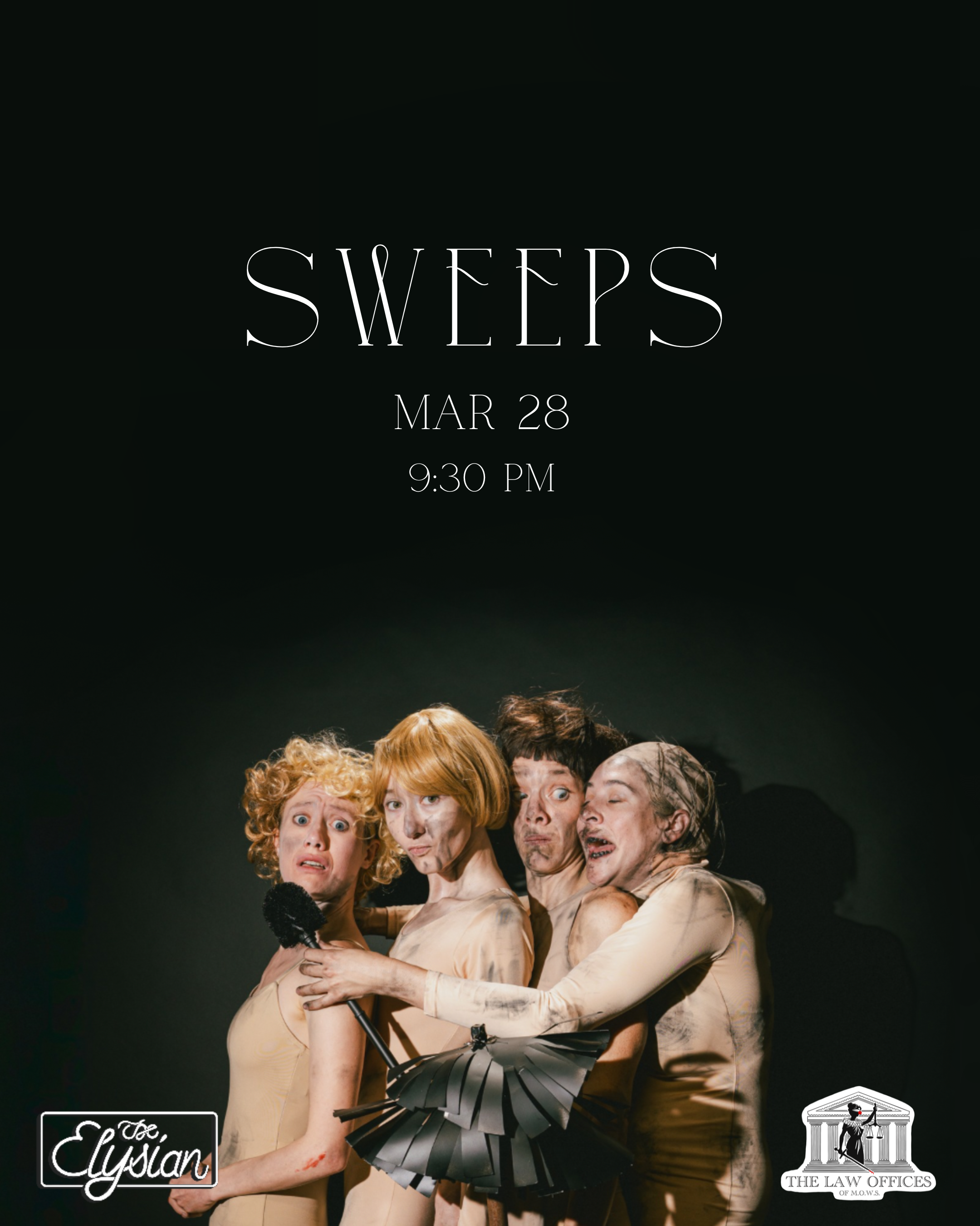 Thrilled to announce that The Law Offices of MOWS has been selected as the Elyisan Theater’s 2026 Company in Residence. Catch us clowning it up on their stage every month! Next show is SWEEPS, Saturday March 28th at 9:30pm.
